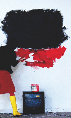 Im gleichen Teil der Ausstellung werden wir die Video-Perfomance Monument von Johanna M. Reich zeigen, in dem sie eine einfache deutsche Fahne malt, in der sie „literal“ verschwindet, sich drehend um Patriotismus und Nationalismus.